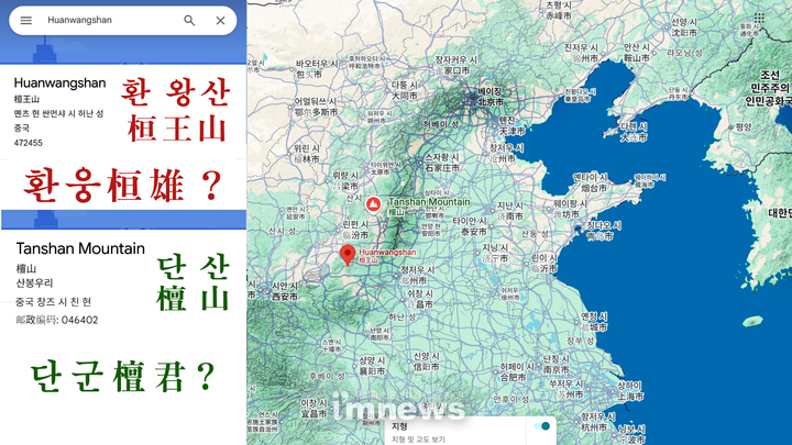 시안(西安)부터 베이징(北京) 근처까지 환웅의 환(桓), 단군의 단(檀)이라는 명칭이 흔하게 사용된다.