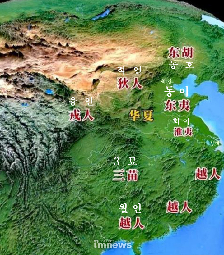 중국은 동서남북의 이민족을, 동이, 서융, 남만, 북적이라 불렀다.