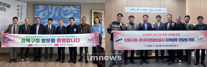 안산시(시장 이민근)는 지난 24일 지적 행정 업무 협력 강화를 위해 한국국토정보공사(LX) 인천경기남부지역본부와 ‘지적 업무 간담회’를 개최했다고 25일 밝혔다.