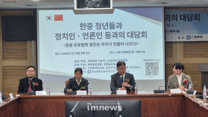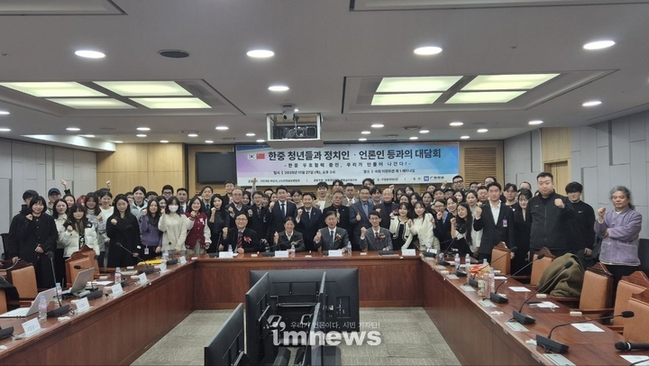 아임뉴스-우리가 언론이다. 시민 기자단! | 한중 양국 청년과 한국 정치·언론계 인사가 함께하는 『한중 청년들과 정치인·언론인 등과의 대담회 – 한중 우호협력 증진, 우리가 만들어 나간다!』가 27일 오후 3시, 국회 의원회관 제1세미나실에서 개최됐다. 이번 대담회에는 한중 청년과 관계자 등 약 150여 명이 참석해, 한중 청년 교류와 양국의 우호 발전에 대한 뜨거운 관심을 보여주었다.
