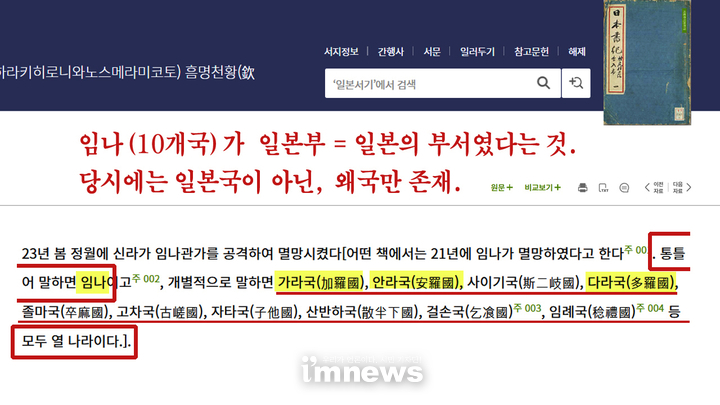 임나일본부는 가라加羅, 다라多羅, 안라安羅 등 10개 나라이다.