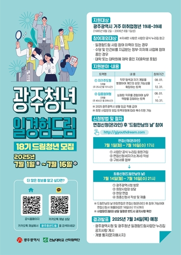 '광주청년 일경험드림'은 광주시에 주민등록을 둔 19∼39세(1985년 8월2일∼2006년 8월1일 출생) 미취업 청년이면 누구나 신청할 수 있다.