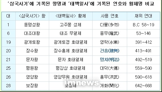 10. 21세 문자명성치호태황제(文咨明成治好太皇帝)=명치대제(明治大帝 491~519) 년호: 명치明治