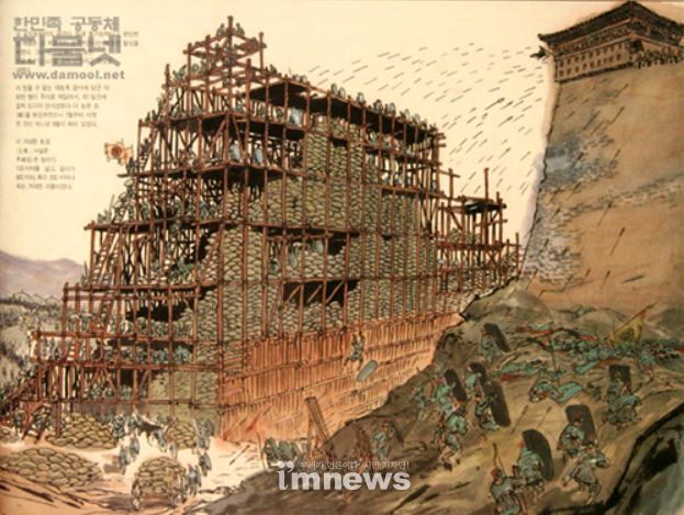 막리지(연개소문)는 기마병 수백 기를 이끌고 난파(灤坡 난灤언덕)를 순시하며 주둔하다가, 상세하게 정세를 듣더니 사람을 보내 총공격하여 사방을 칠 것을 명하였다. 연수高延壽 등도 말갈병과 합쳐 협공하고 양만춘楊萬春은 성위에 올라가 싸움을 격려하니 사기는 더욱 떨쳐저서 일당백의 용맹이 없는 자가 없었다.