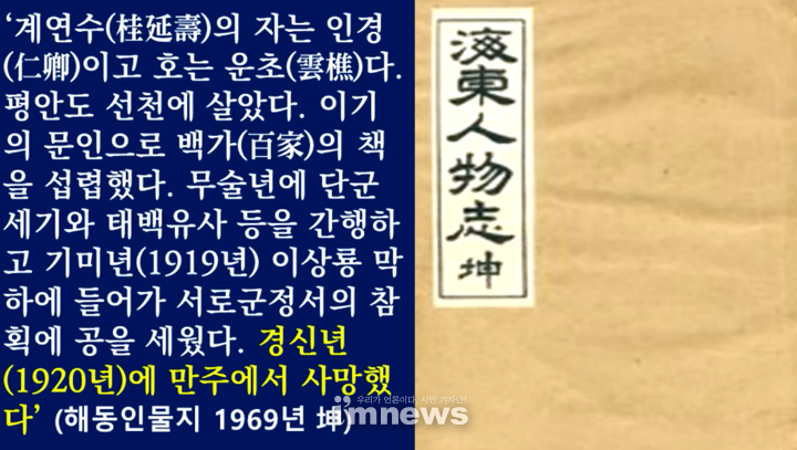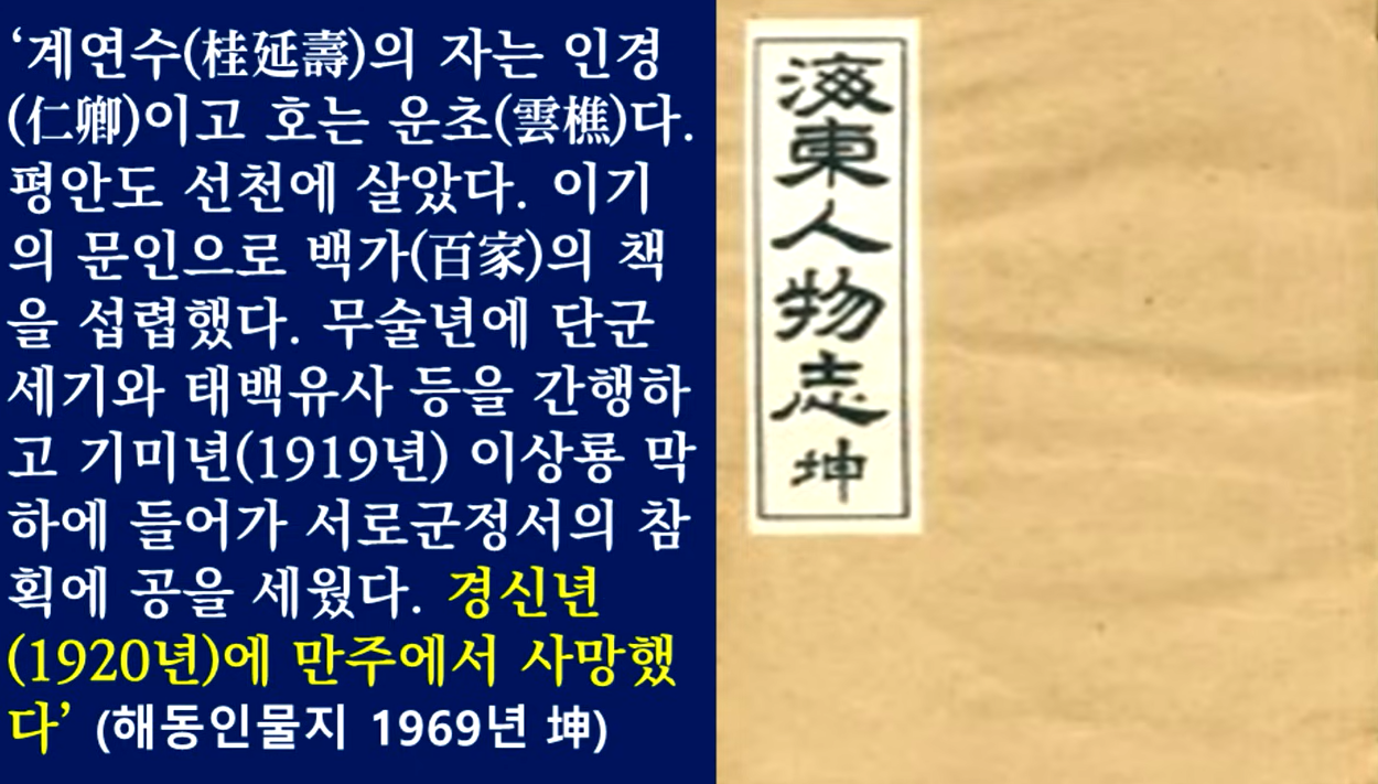 <환단고기> 출판과정의 난맥상도 답답하지만, 이에 대한 현 한국사학계 꼬라지는 천배 만배 더 한심하다. 좌 김준혁, 배기성, 우 기경량, 박지향 포함 좌우 모든 역사학자들이 "계연수가 신분미상의 인물이라 믿을 수 없다"고 입을 모아 말한다. 하지만 당시 독립투쟁 하시는 분들 중에는 성이나 이름을 바꿔가며 신분을 숨기는 경우가 많았고, 유명한 이회영 6형제 중 유일하게 살아남아 해방후 부통령을 역임했던 독립투쟁가 이시영 선생 또한 항일투쟁기 중 저서에 동료 독립투쟁가로 이름을 언급할 정도로 명망있는 분이었다.