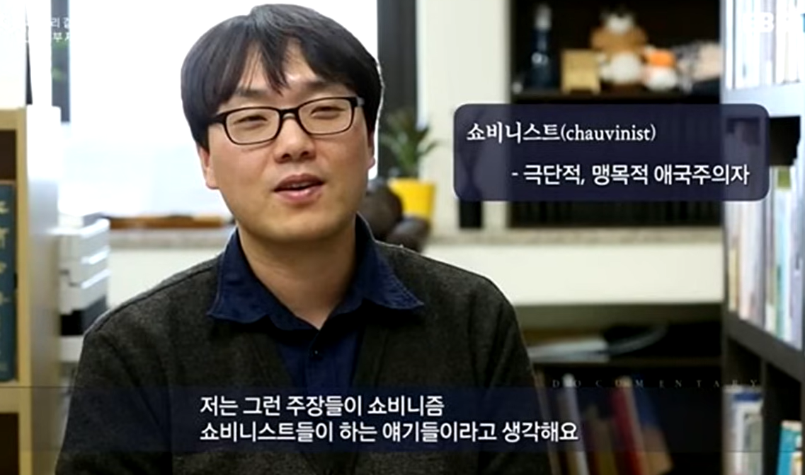 -"우리가 황제국이었다고? 훌륭했다고? 코딱지만했고, 늘 꼬붕국이나 식민지국이었다. 헛소리 그만해! 너 환빠냐? 태백교 신자야?"
