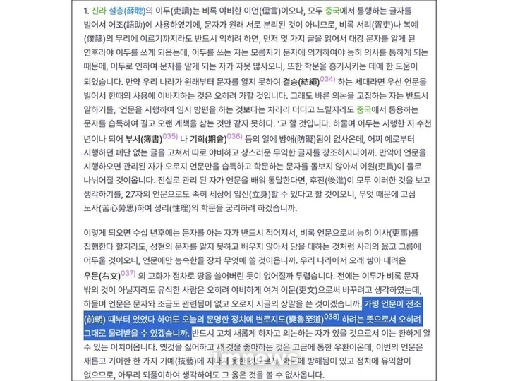 "옛 조정(前朝, 고려)에는 언문(諺文)이 있었고 ...