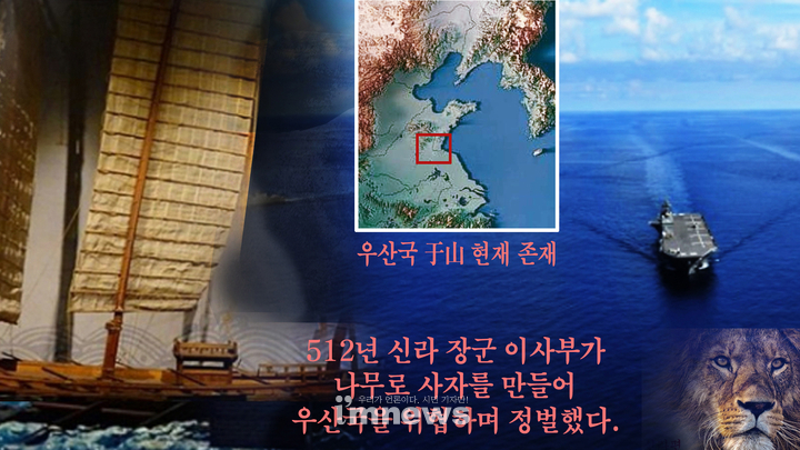 신라 이사부 장군이 전함에 목각 사자를 싣고 위협하니 항복하였다.”