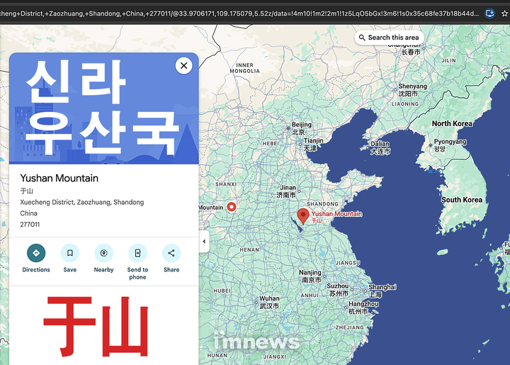 반대로, 우산국을 산동반도의 ‘우산(于山)’ 지명으로 재배치하면 상황은 달라진다.