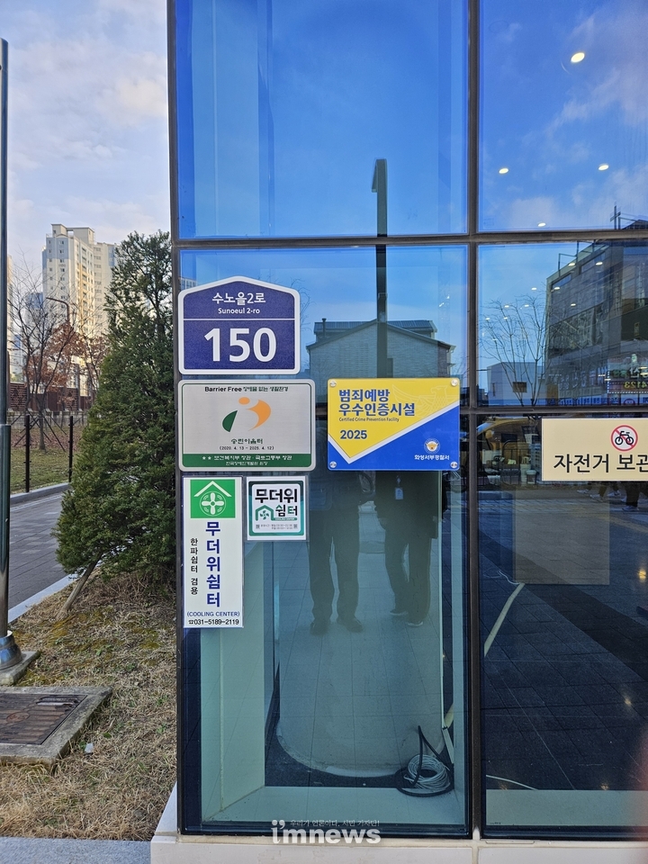 범죄예방 우수시설 인증은 관할 경찰서 범죄예방진단팀이 시설물 관리운영 체계, 접근통제, 안내표지, 방범 상태 등을 정밀하게 진단해 평가·인증하는 제도다. 송린이음터는 ▲주차장 사각지대 CCTV 설치 여부 ▲조명 점등 상태 확인 ▲교통안전 시설물 설치 ▲비상벨 안내문 시인성 개선 ▲비상벨 설치 기둥벽과 바닥면 도색 차별화 등 철저한 안전점검과 환경 개선 작업을 거쳐 화성서부경찰서로부터 해당 인증을 획득하였다.