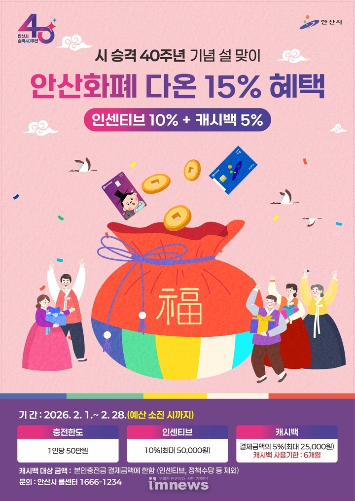 이민근 안산시장은 “시 승격 40주년을 맞이하는 뜻깊은 해인 만큼, 고물가로 어려움을 겪는 시민들에게 실질적인 도움을 드리고자 관련 정책을 준비했다”라며, “지역 내 소비가 활성화되어 소상공인들에게도 큰 힘이 되길 기대한다”고 말했다.