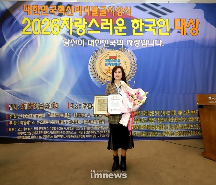 이날 시상식에 사랑&희망나눔운동본부 중앙회(총재 마홍배) 여성위원장이자 불로닭 본점 최명숙대표가 올해의 자랑스런 한국인 사회봉사대상에 선정되어 수상의 영예를 앉았다.