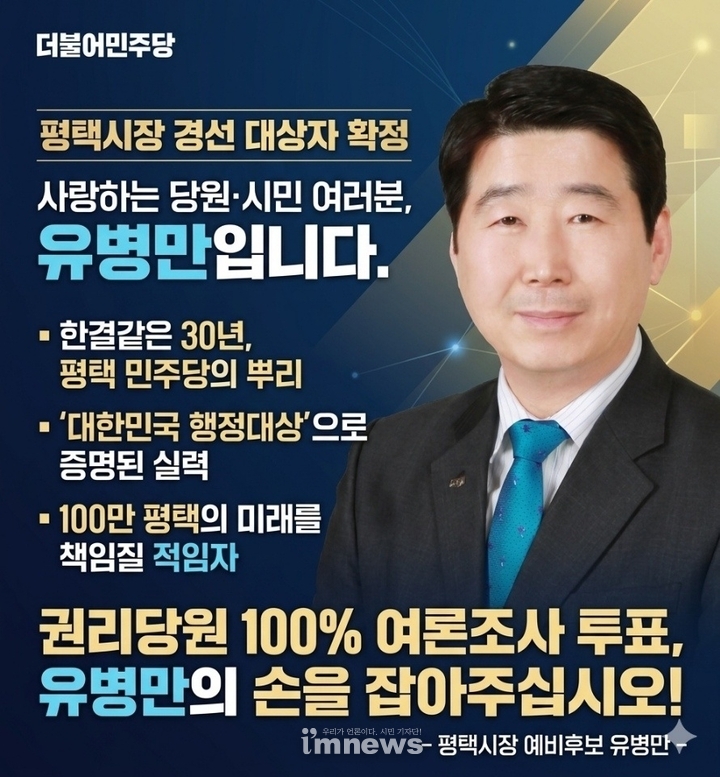 더불어민주당 평택시장 예비후보 유병만. 그는 화려한 수식보다 ‘사람’이라는 단어를 먼저 꺼내는 정치인이다.