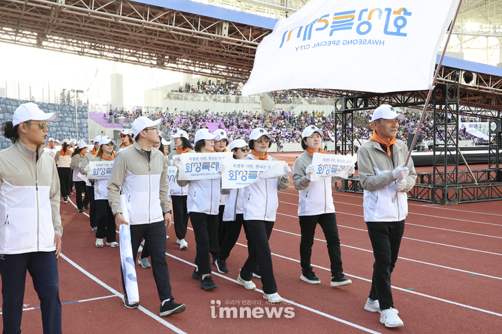 개회식은 31개 시군 선수단 입장을 시작으로 ▲축하공연 ▲개회선언 ▲대회기 게양 ▲대회사 ▲선수단 및 심판대표 선서 ▲성화점화 퍼포먼스 순으로 진행되었으며, 화성특례시 선수단은 당당한 모습으로 입장하며 ‘특별한 시민, 빛나는 도시 화성’의 위상을 알렸다.